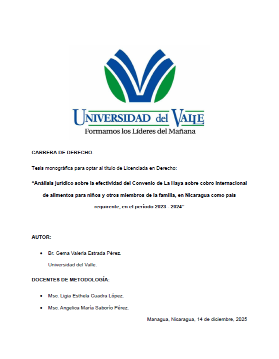 Esta investigación analiza la efectividad del Convenio de La Haya de 2007 sobre el cobro internacional de alimentos, centrándose en la experiencia de Nicaragua como país requirente durante el período 2023-2024.
