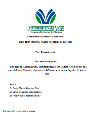La presente monografía desarrolla una propuesta de estrategia de marketing digital dirigida a la Clínica Santa Gema, ubicada en la ciudad de Masaya, durante el periodo de mayo a diciembre del año 2024, con especial enfoque en el área de radiología. El estudio parte de la necesidad de mejorar la visibilidad y posicionamiento digital de esta área específica, aprovechando herramientas tecnológicas actuales y canales digitales adecuados.
