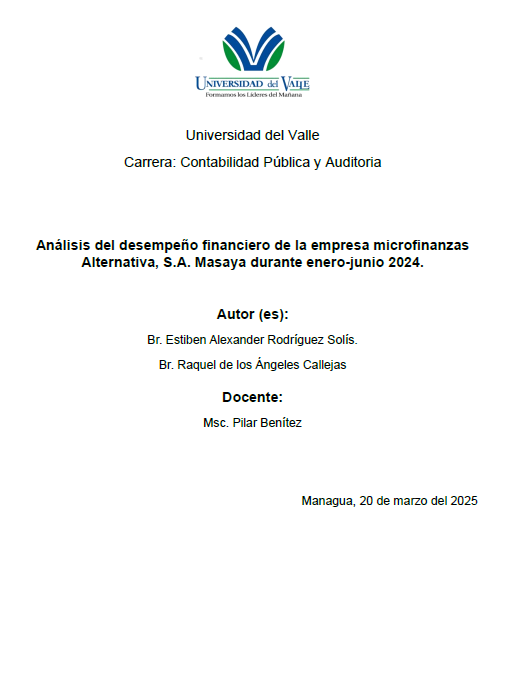 El objetivo principal de este estudio fue analizar el desempeño financiero integral de Microfinanzas Alternativa, S.A. a través del examen de sus Estados Financieros en Masaya durante el primer semestre de 2024. Para lograrlo, se adoptó un enfoque mixto, utilizando tanto métodos cualitativos como cuantitativos, y un diseño metodológico descriptivo y analítico. La investigación incluyó entrevistas con el gerente general y el contador, así como encuestas a los promotores de crédito, lo que proporcionó información detallada sobre los principales aspectos de la gestión financiera de la empresa.
