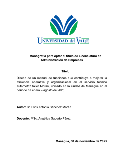 el servicio técnico automotriz taller Morán, ubicado en la ciudad de Managua,