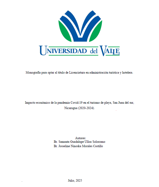 La investigación titulada “Análisis del impacto económico de la pandemia Covid-19 en el turismo de playa, San Juan del Sur, Nicaragua (2020–2024)” se planteó como objetivo principal evaluar cómo las restricciones sanitarias, las medidas de bioseguridad y las dinámicas del mercado nacional e internacional modificaron la según temporada (vacaciones, Semana Santa y período bajo), mientras que para la parte cualitativa se realizaron entrevistas semiestructuradas a gerentes y jefes de operaciones de cuatro hoteles representativos de la bahía, elegidos por conveniencia. Los datos cuantitativos fueron procesados en Excel y analizados descriptivamente (frecuencias, medias y desviaciones estándar) para mostrar tendencias de ocupación, que cayeron de un promedio del 65 % en 2019 a menos del 20 % en 2020, con recuperaciones parciales al 35 % en 2021 y al 55 % en 2023y variaciones en facturación, contracción del 61 % en 2020, repunte gradual del 25 % en 2022 y estabilización en 2024 cerca del 80 % de los niveles prepandemia. Paralelamente, el análisis de contenido de las entrevistas reveló percepciones sobre la eficacia de protocolos (distanciamiento, desinfección y rotación de personal), la creciente relevancia del turismo nacional para sostener la demanda y la urgencia de diversificar servicios (paquetes multidestino y ofertas gastronómicas). Entre las conclusiones, se destaca que la implementación rigurosa de medidas sanitarias y la flexibilidad operativa fueron determinantes para la resiliencia del sector, y se recomienda fortalecer la conectividad aérea mediante acuerdos con aerolíneas, facilitar líneas de crédito para MiPymes turísticas y promover una estrategia de marketing orientada a mercados de alto gasto (EE. UU. y Europa).