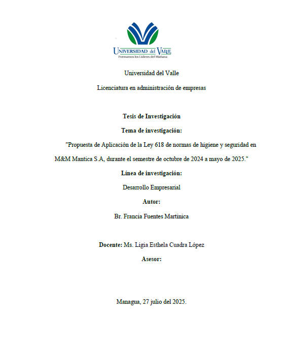 El presente estudio analiza la aplicación de la Ley 618, Ley General de Higiene y Seguridad del Trabajo, en la empresa M&M Mantica S.A., dedicada a la venta, instalación y mantenimiento de sistemas de aire acondicionado en Nicaragua. Dada la naturaleza de las actividades laborales, los trabajadores enfrentan riesgos significativos como caídas en altura, manipulación de refrigerantes, trabajos eléctricos, exposición al polvo y labores de soldadura.