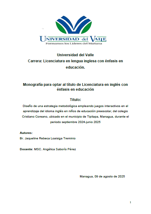 inglés en niños de preescolar del Colegio Cristiano Coreano de Tipitapa,
