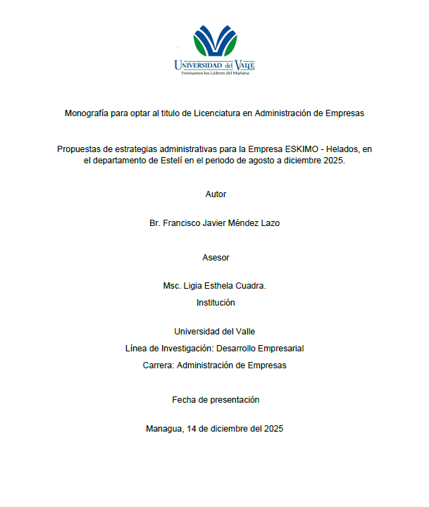 Este estudio se centra en identificar los factores que influyen en la percepción de la marca Eskimo-Helados y en la decisión de compra de sus clientes en Estelí, con el fin de proponer estrategias administrativas que fortalezcan la posición de la empresa en el mercado local. A través de una metodología cuantitativa y descriptiva, se aplicó un cuestionario a los consumidores, permitiendo diagnosticar su nivel de satisfacción y analizar sus hábitos de compra.
