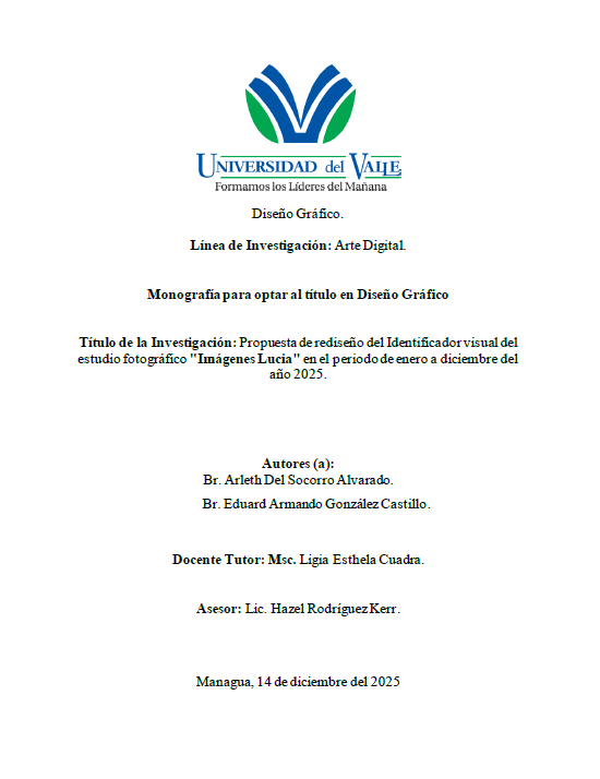 La presente investigación desarrolla una propuesta de rediseño del Imagotipo fotográfico Imágenes Lucía, durante el periodo de enero a diciembre del año 2025, con el fin de actualizar y fortalecer su identidad visual. El trabajo parte del reconocimiento de que el Imagotipo constituye un elemento fundamental de la comunicación visual de cualquier organización, al sintetizar en su forma, color, tipografía, estilo, valores y la esencia de la marca. En el caso de Imágenes Lucía, el Imagotipo vigente, que ha acompañado al estudio desde sus inicios, evidencia limitaciones en cuanto a su coherencia gráfica, legibilidad, uso del color y capacidad para transmitir los valores actuales del negocio.