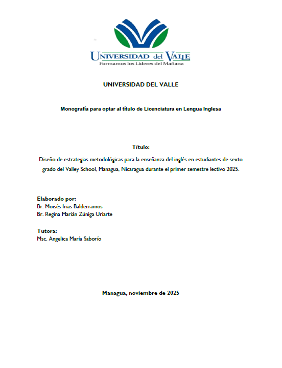 Esta investigación cualitativa tiene como objetivo diseñar estrategias metodológicas contextualizadas y pertinentes que optimicen el proceso de enseñanza del idioma inglés en estudiantes de sexto grado del Valley School, Managua, durante el primer semestre del año lectivo 2025. La problemática surge ante la persistente dificultad de los estudiantes para desarrollar competencias comunicativas efectivas en inglés, debido al predominio de prácticas pedagógicas tradicionales centradas en la memorización y la gramática, en detrimento de enfoques comunicativos, lúdicos y participativos.