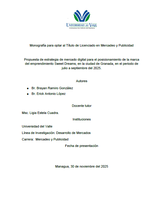 El objetivo de esta investigación fue proponer estrategias de marketing digital para posicionar la marca Sweet Dreams en la ciudad de Granada, durante el periodo de julio a septiembre de 2025. Se utilizó un enfoque cuantitativo con diseño descriptivo, ya que permitió recopilar datos concretos y medibles sobre el comportamiento de los clientes en redes sociales, su nivel de interacción con la marca y los contenidos que influyen en sus decisiones de compra. Este método fue el más adecuado para conocer las preferencias reales del público objetivo y orientar acciones estratégicas basadas en evidencia.