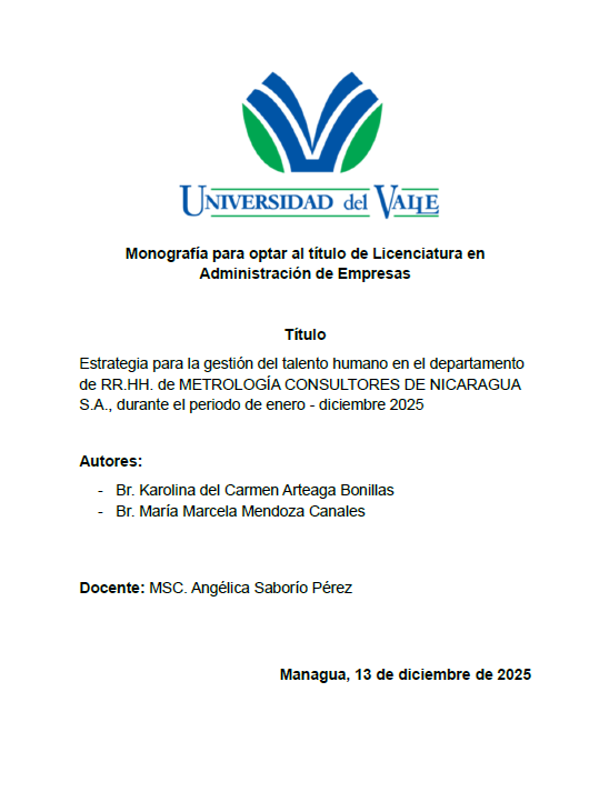 Esta monografía presenta una estrategia integral para optimizar la gestión del talento humano en METROLOGÍA CONSULTORES DE NICARAGUA S.A., orientada a fortalecer la retención, productividad y compromiso del personal. La propuesta surge ante desafíos como la alta rotación y la ausencia de políticas efectivas, planteando acciones basadas en reconocimiento, formación, bienestar y liderazgo transformacional, en coherencia con los objetivos institucionales.