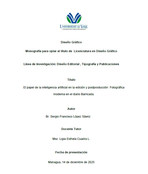 El presente trabajo de investigación analiza el rol de la inteligencia artificial (IA) en los procesos de edición y postproducción fotográfica moderna, tomando como estudio el diario digital Barricada, en Managua, Nicaragua. La finalidad es examinar cómo las tecnologías emergentes transforman los flujos de trabajo visual en el ámbito periodístico local, y de qué manera influyen en la estética, eficiencia y ética de la producción de imágenes informativas.
